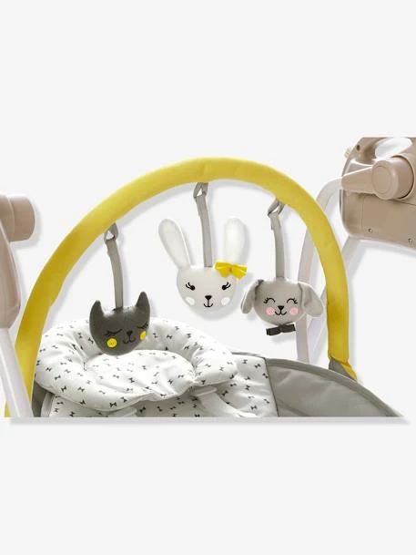 Idéale pour les moments d’éveil grâce à son arche de jeux, la balancelle Babyswing offre les 2 fonctions, transat et balancelle, propices à calmer et apaiser bébé.