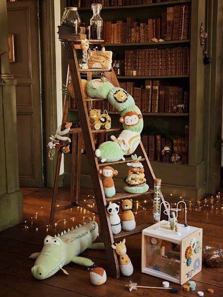 Un adorable crocodile transporte avec lui une ribambelle de jouets pour éveiller et émerveiller les petits ! En velours tout doux, il aide au développement de tous les sens.