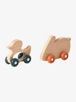 Set De 2 Animaux à Roulettes En Bois Et Silicone Orange – Vertbaudet