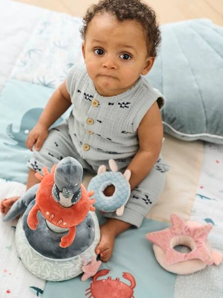 Tour à Empiler En Tissu SOUS L'OCÉAN Gris - Vertbaudet -Boutique Ergobaby tour a empiler en tissu sous locean 1